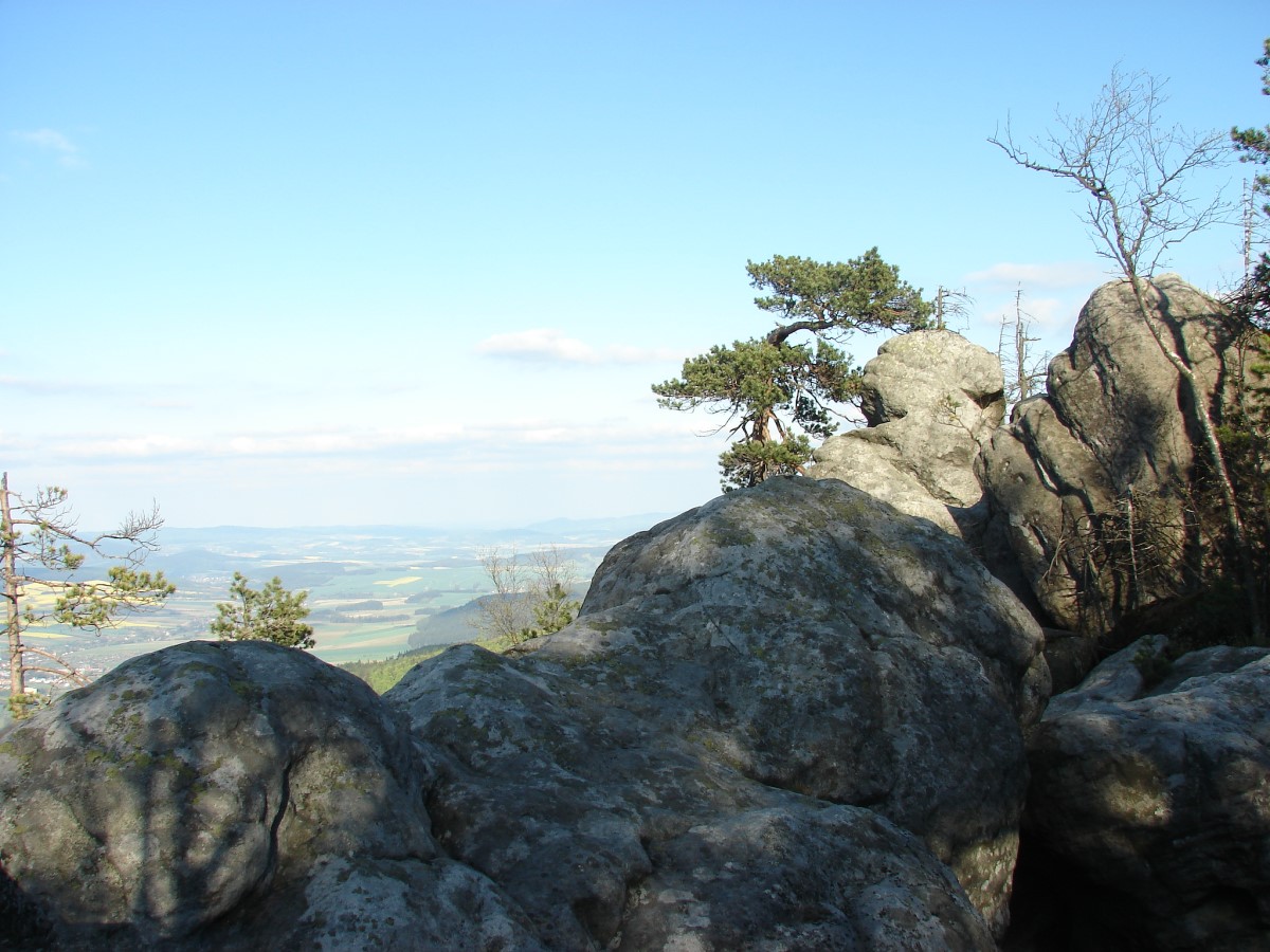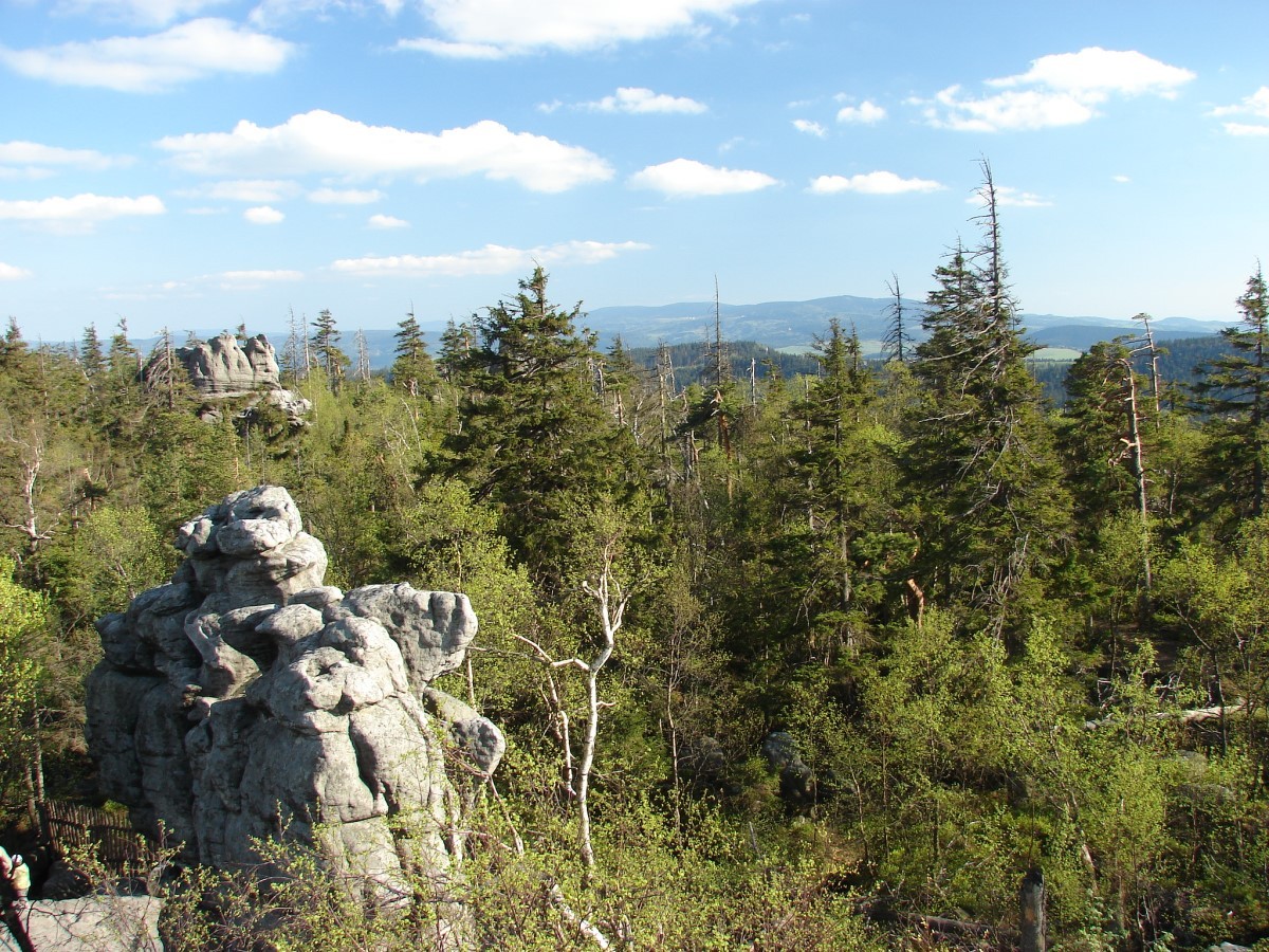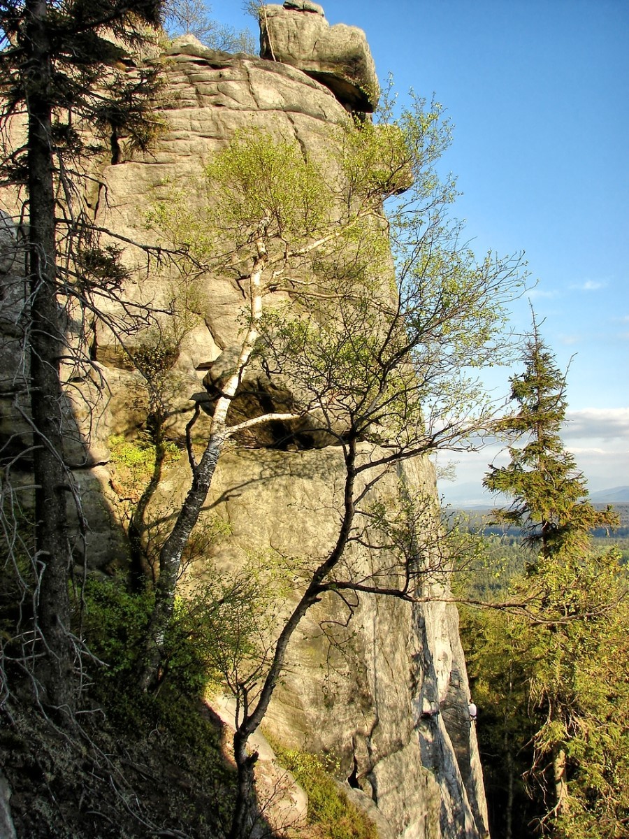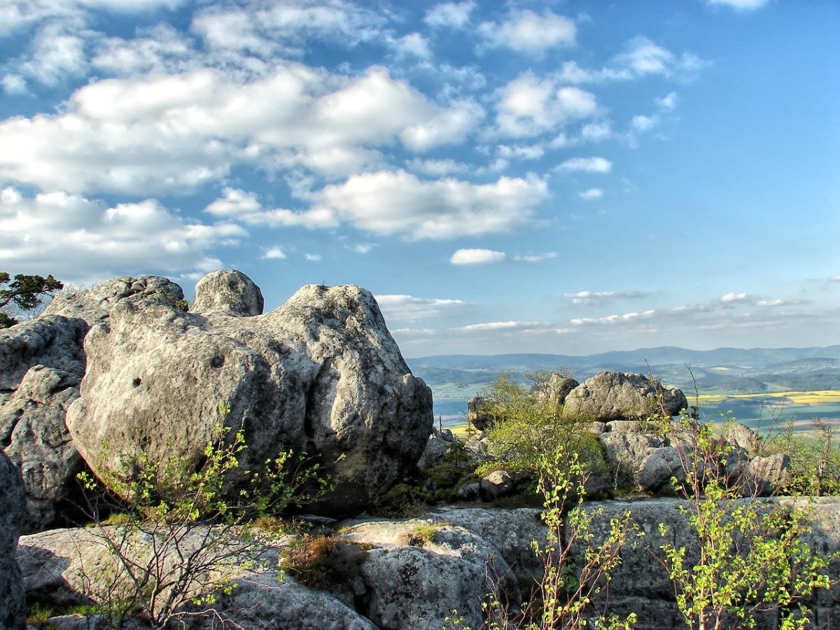 Na Szczelińcu znajdziecie także kilka tarasów widokowych, skąd rozpościera się widok na rozległą panoramę okolicy, a przy dobrej widoczności możemy stamtąd podobno wypatrzyć Karkonosze. Po terenie Parku poprowadzono kilka szlaków. Masyw jest tak wyjątkowy, że warto przeznaczyć na chodzenie po nim więcej czasu. Na pewno nikt później nie stwierdzi, że był on zmarnowany 🙂 To naprawdę niesamowite góry, wyeksponowane na niemal płaskim terenie, na którym w pewnym momencie wyrasta nagle potężny, kamienny masyw. Skałki są poprzecinane szczelinami, wąwozami; kamienie różnych wielkości ułożone są czasem w takie kształty, że trudno uwierzyć, że jest to przypadkowy twór natury. Nie są to jednak same skały. Pomiędzy nimi rosną drzewa, krzewy i mniejsze rośliny. Całość tworzy piękną kompozycję 🙂