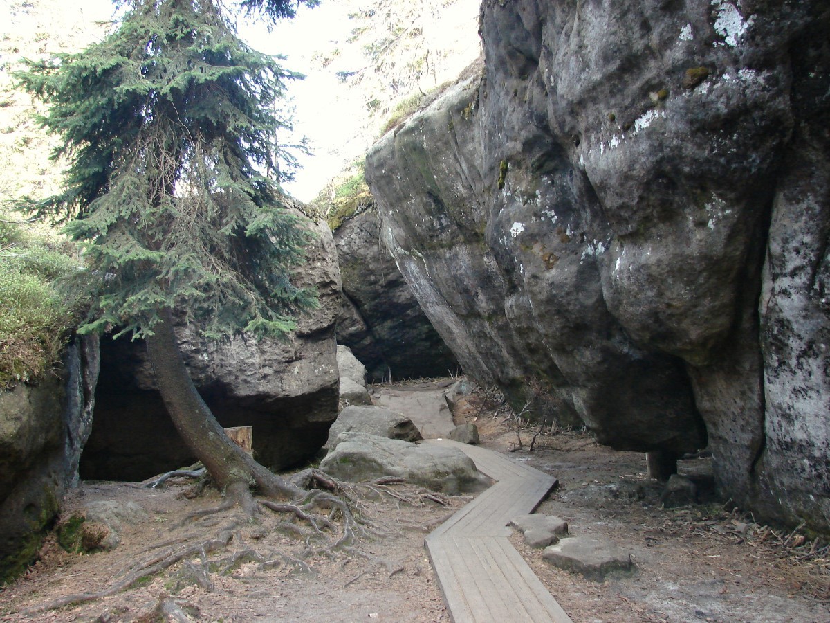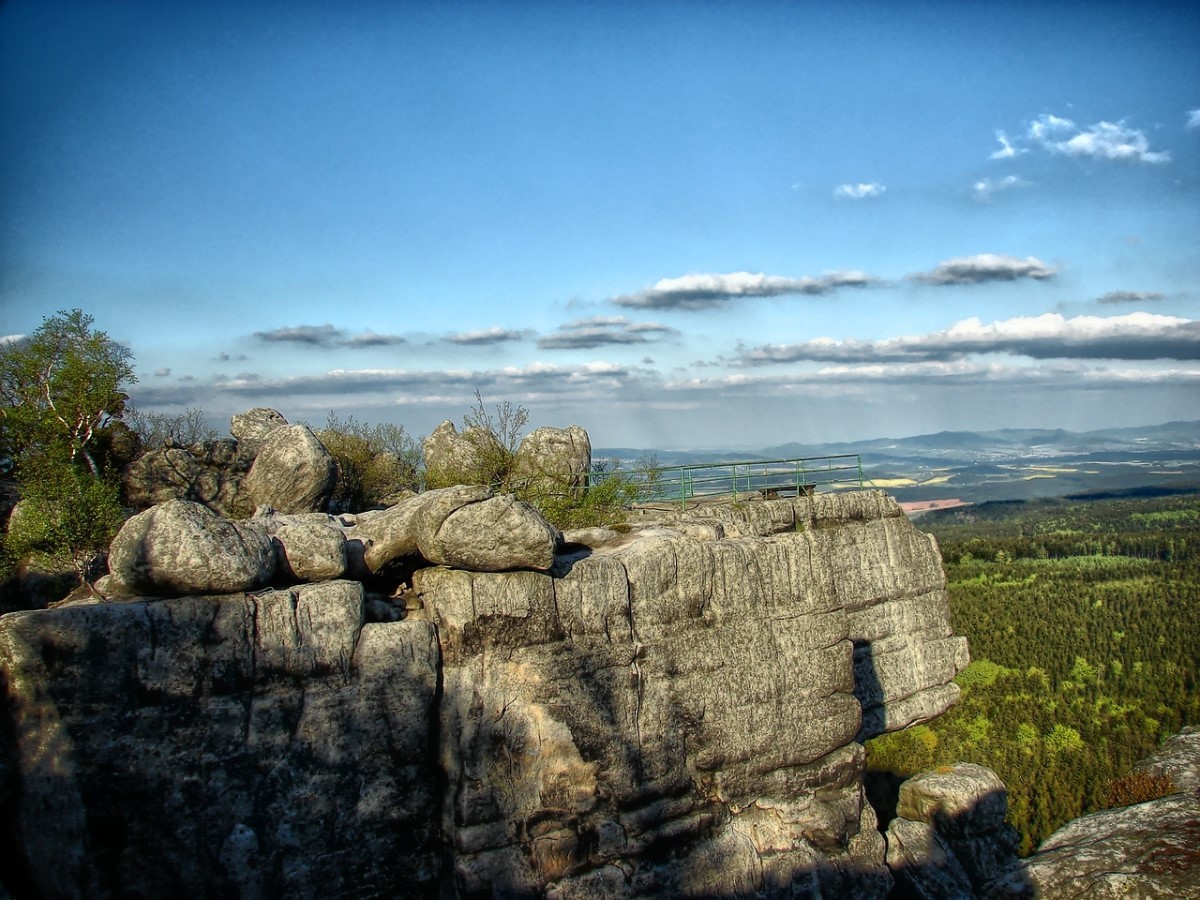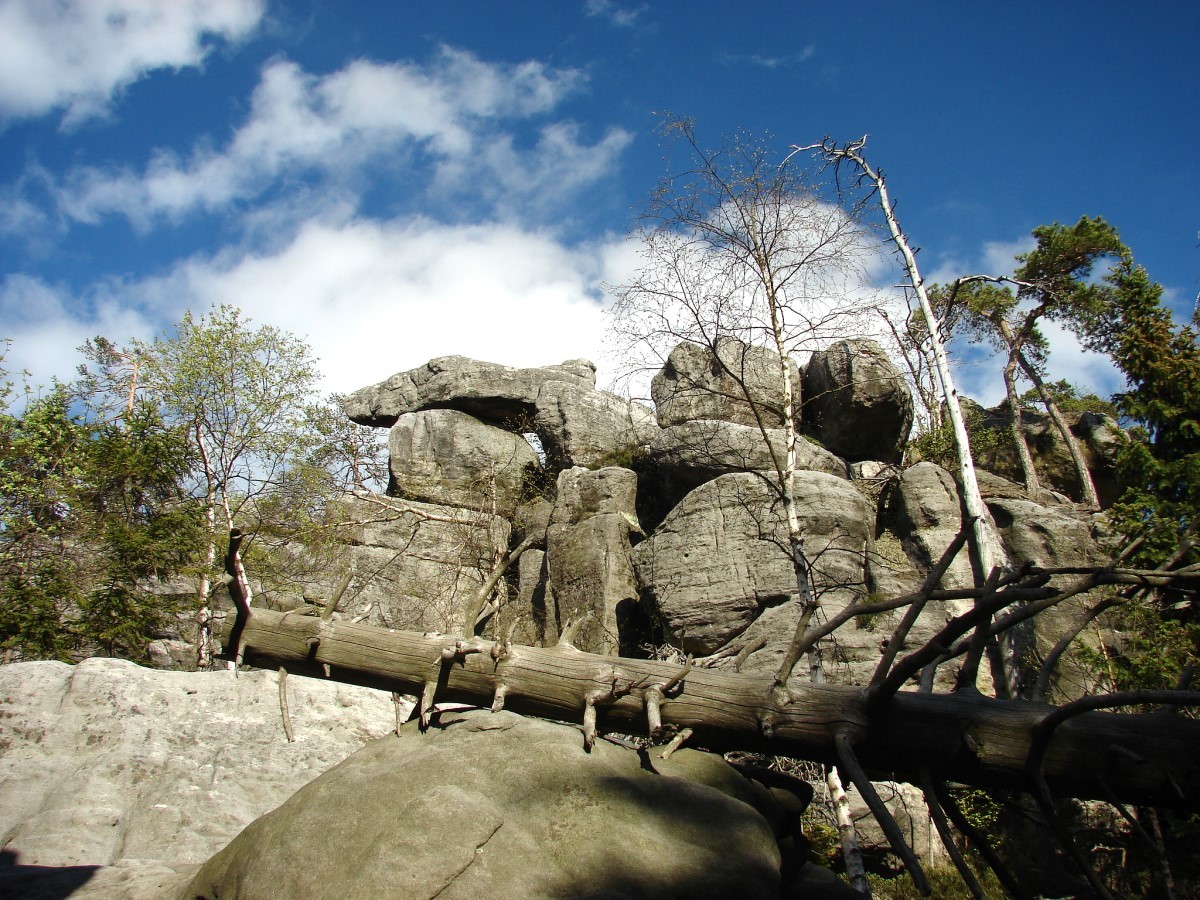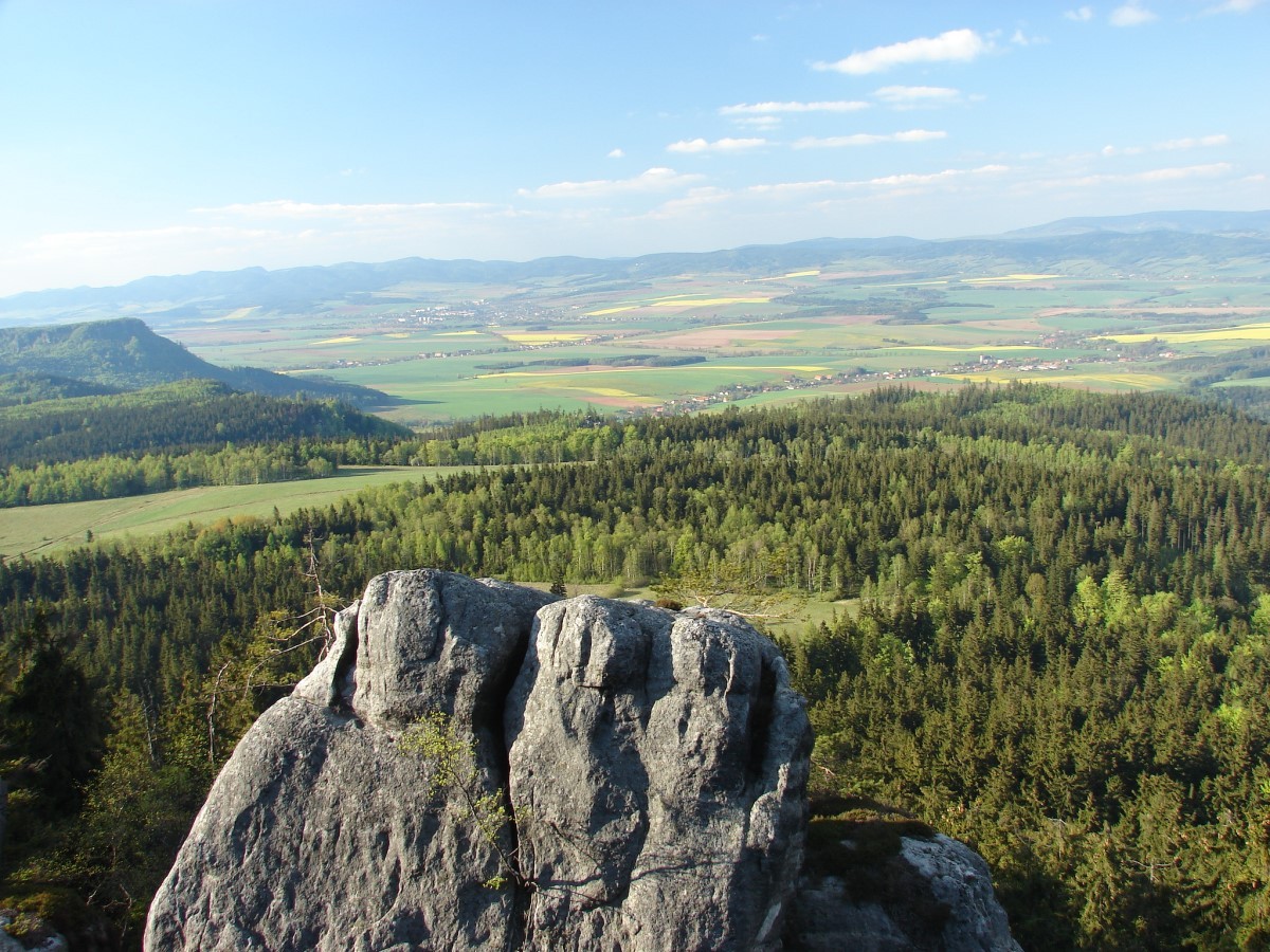 Na Szczelińcu znajdziecie także kilka tarasów widokowych, skąd rozpościera się widok na rozległą panoramę okolicy, a przy dobrej widoczności możemy stamtąd podobno wypatrzyć Karkonosze. Po terenie Parku poprowadzono kilka szlaków. Masyw jest tak wyjątkowy, że warto przeznaczyć na chodzenie po nim więcej czasu. Na pewno nikt później nie stwierdzi, że był on zmarnowany 🙂 To naprawdę niesamowite góry, wyeksponowane na niemal płaskim terenie, na którym w pewnym momencie wyrasta nagle potężny, kamienny masyw. Skałki są poprzecinane szczelinami, wąwozami; kamienie różnych wielkości ułożone są czasem w takie kształty, że trudno uwierzyć, że jest to przypadkowy twór natury. Nie są to jednak same skały. Pomiędzy nimi rosną drzewa, krzewy i mniejsze rośliny. Całość tworzy piękną kompozycję 🙂