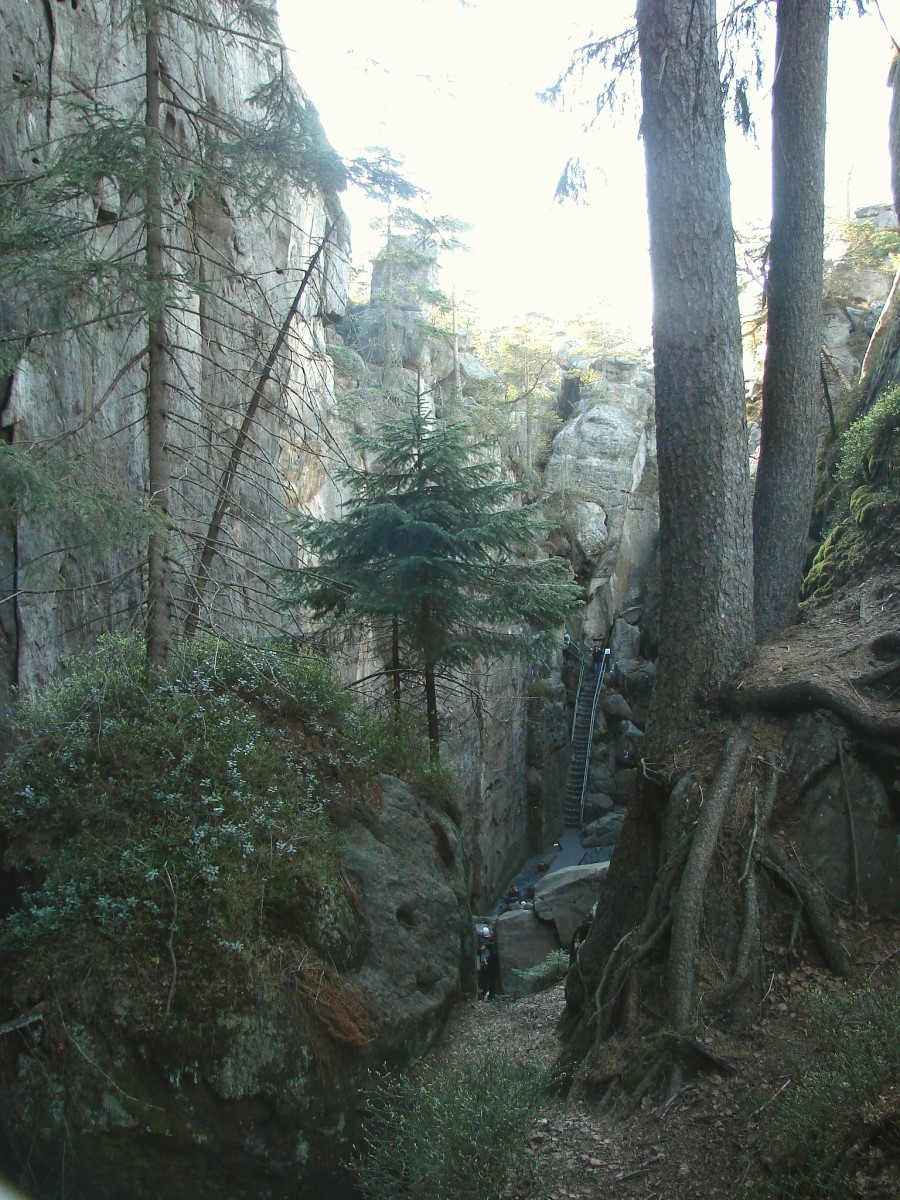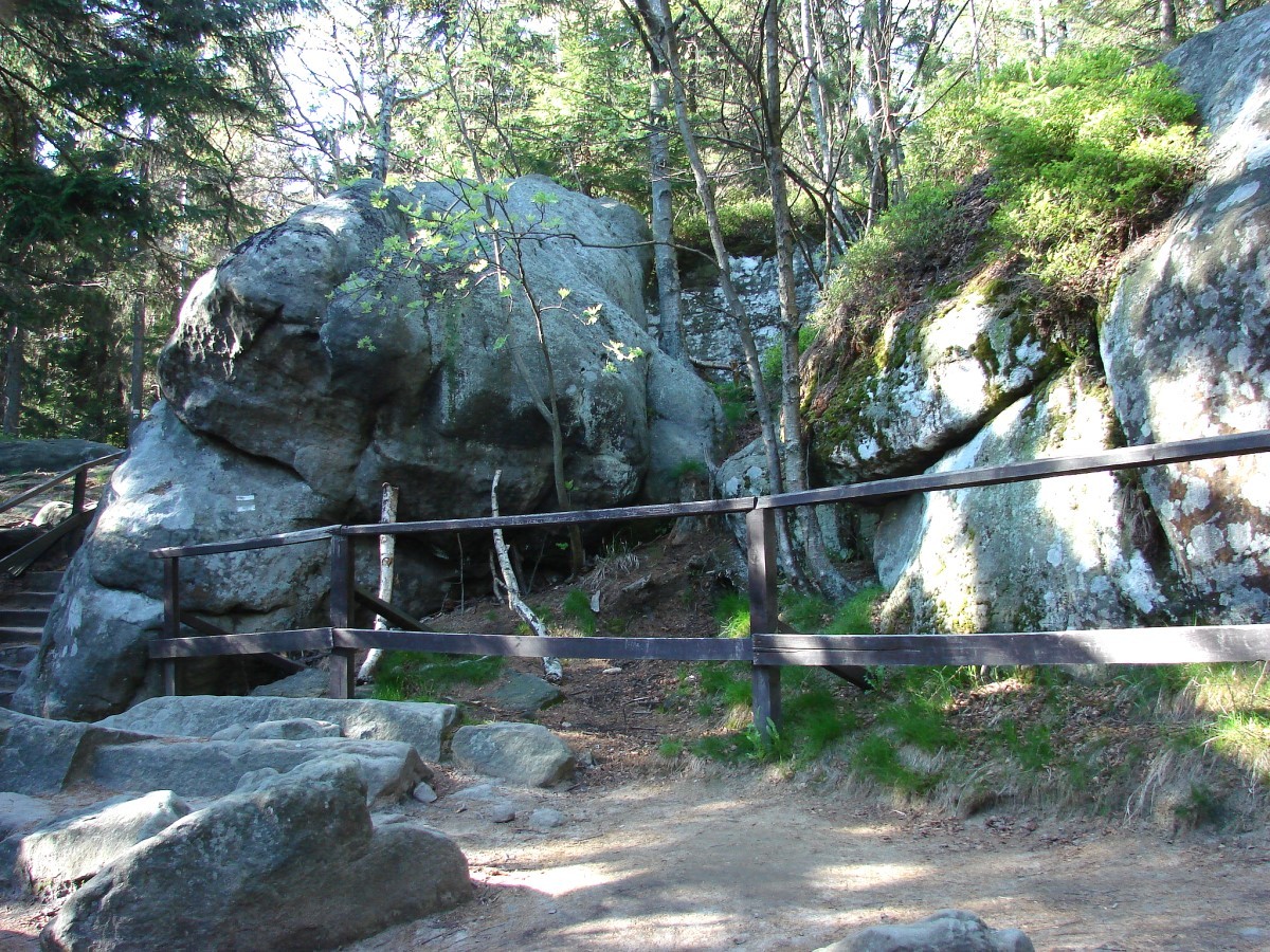 Chodząc po szlaku trafimy także na głębokie i wąskie wąwozy i korytarze np. na Piekiełko czy Diabelską kuchnię. Schodzi się do nich po wąskich i ciasnych schodach wykutych w kamieniu, więc wrażenia są naprawdę niesamowite. W niektórych miejscach nawet latem potrafi zalegać warstwa śniegu, a właściwie wtedy już lodu.