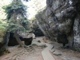 Komu nie polecam Szczelińca? Na pewno osobom starszym o słabej kondycji, ponieważ samo wejście może je kosztować sporo wysiłku; męczące dla takich osób może być także zejście. Absolutnie nie powinny się tam wybierać osoby z dziećmi w wózkach – nie wniesiecie ich na górę, a jeśli nawet wykażecie się wystarczającą siłą i determinacją, żeby tego dokonać, po prostu nie przeciśniecie się przez wiele miejsc. Tam się po prostu chodzi po kładkach, różnie ułożonych skałach, stopniach i ścieżkach, trasa jest położona raz wyżej, raz niżej. Mocno bym się też zastanowiła nad niesieniem dziecka w nosidełku, bo w razie poślizgnięcia czy potknięcia można mu naprawdę zrobić krzywdę. Dla mniejszych dzieci, zwłaszcza rozbrykanych, które lubią gnać do przodu i się chować, bezpieczniejsze będą Błędne Skały. Na Szczelińcu może być większy problem z ich upilnowaniem i bezpieczeństwem.